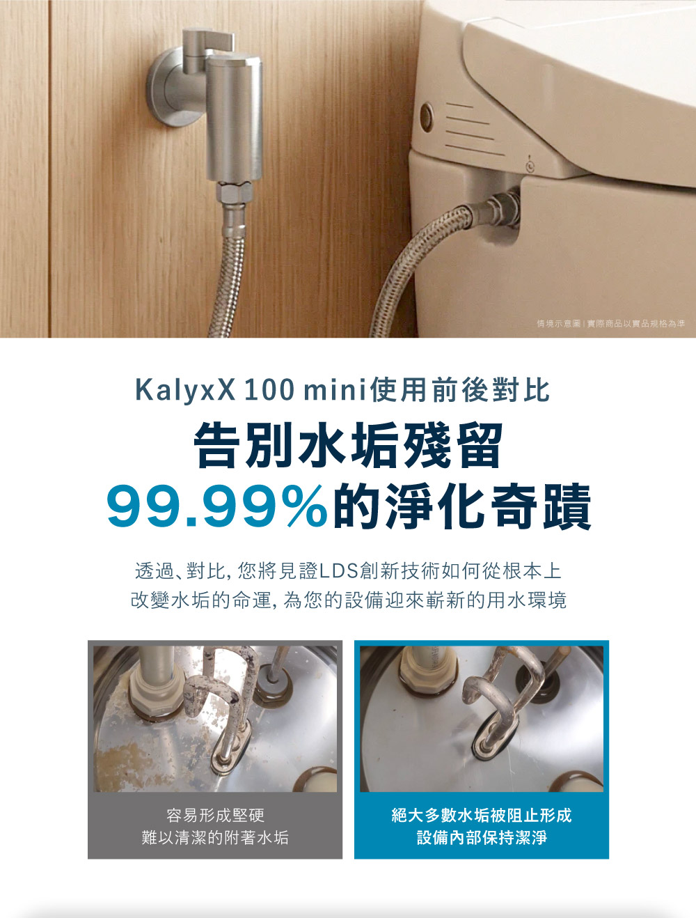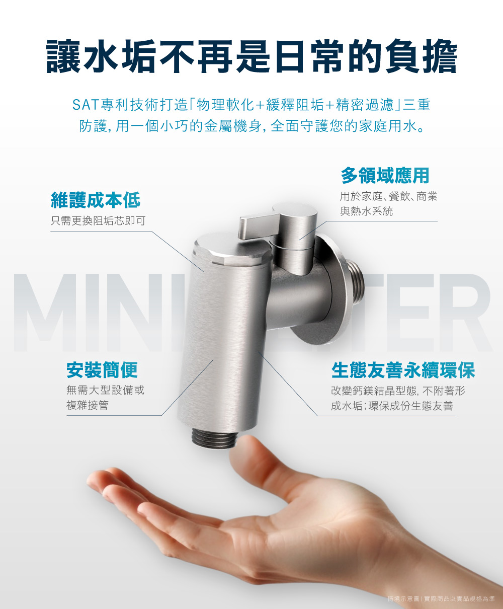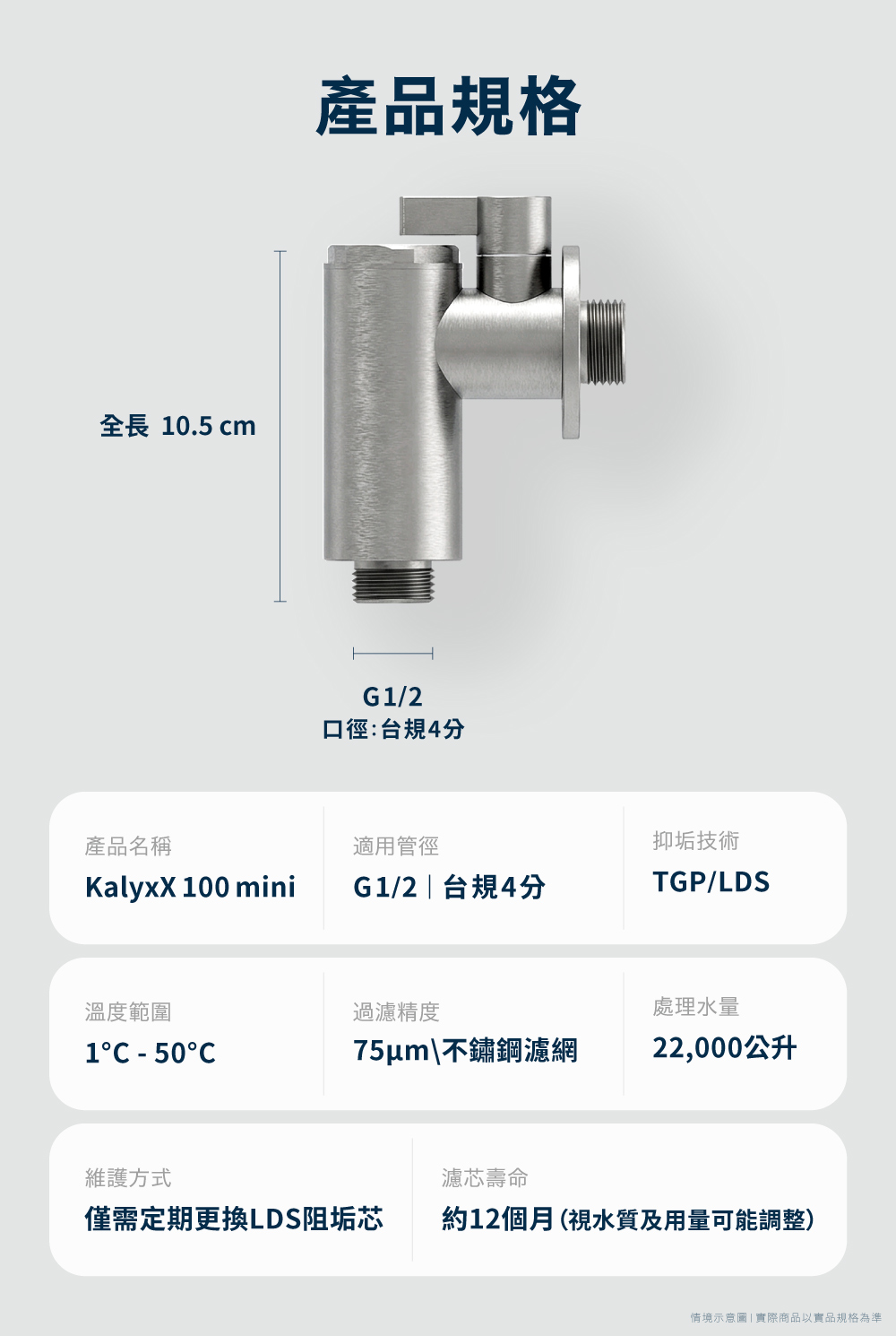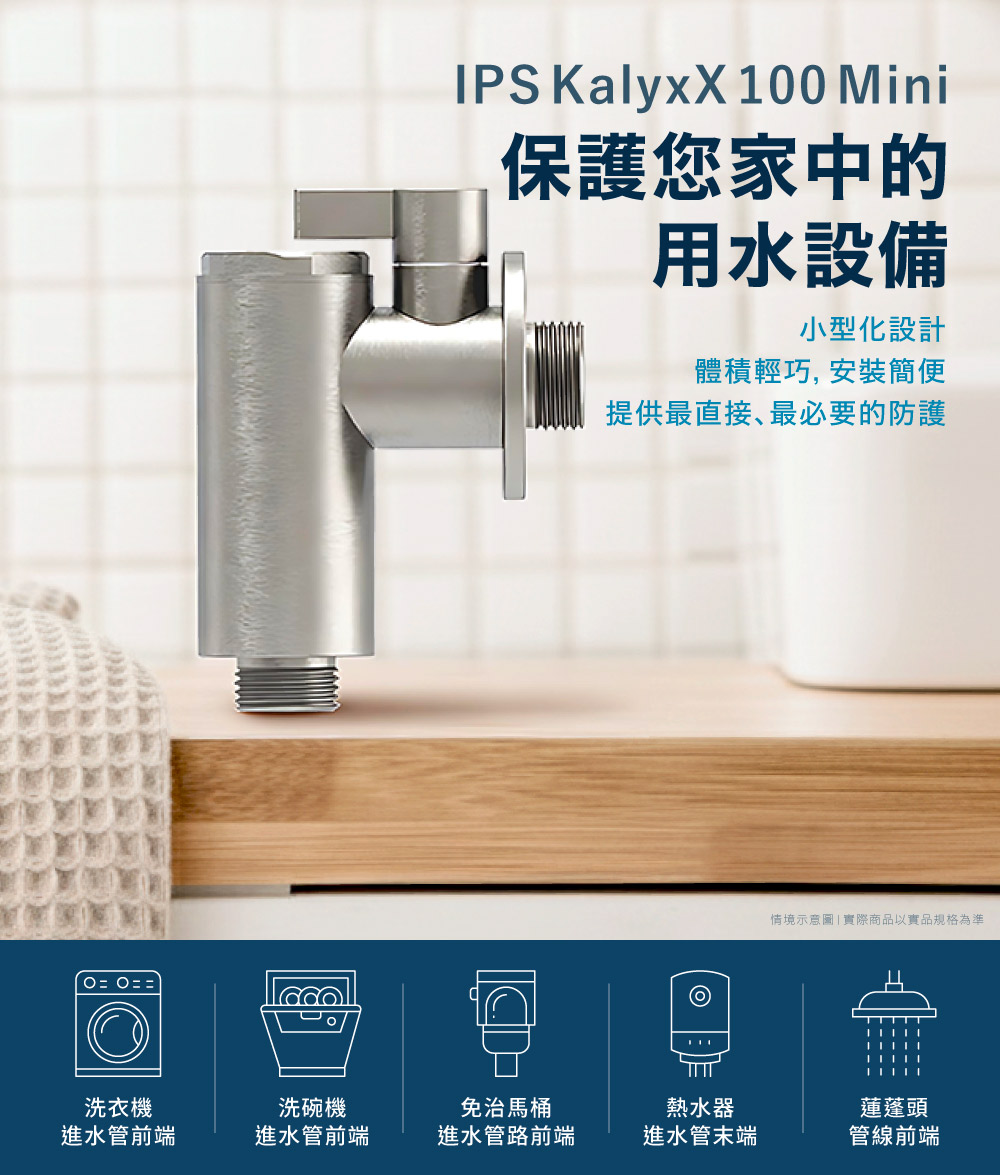特價 微型過濾軟化器 凡爾型NT$2,880 原始價格:NT$2,880。NT$2,580目前價格:NT$2,580。 IPS KalyxX 100 Mini 微型過濾軟化器 凡爾型 1. 雙效抑垢核心:TGP + LDS 技術相輔相成,既能物理改變結晶,又能利用緩釋劑穩定阻垢,效果更持久。 2. 三重防護:同時具備「物理軟化 + 緩釋阻垢 + 精密過濾」,全面守護家庭用水。 3. 小型化設計:體積輕巧,安裝簡便,適合廚下型、家用飲水設備及小型熱水器前端。 分類: 商品, 微型過濾軟化器 描述